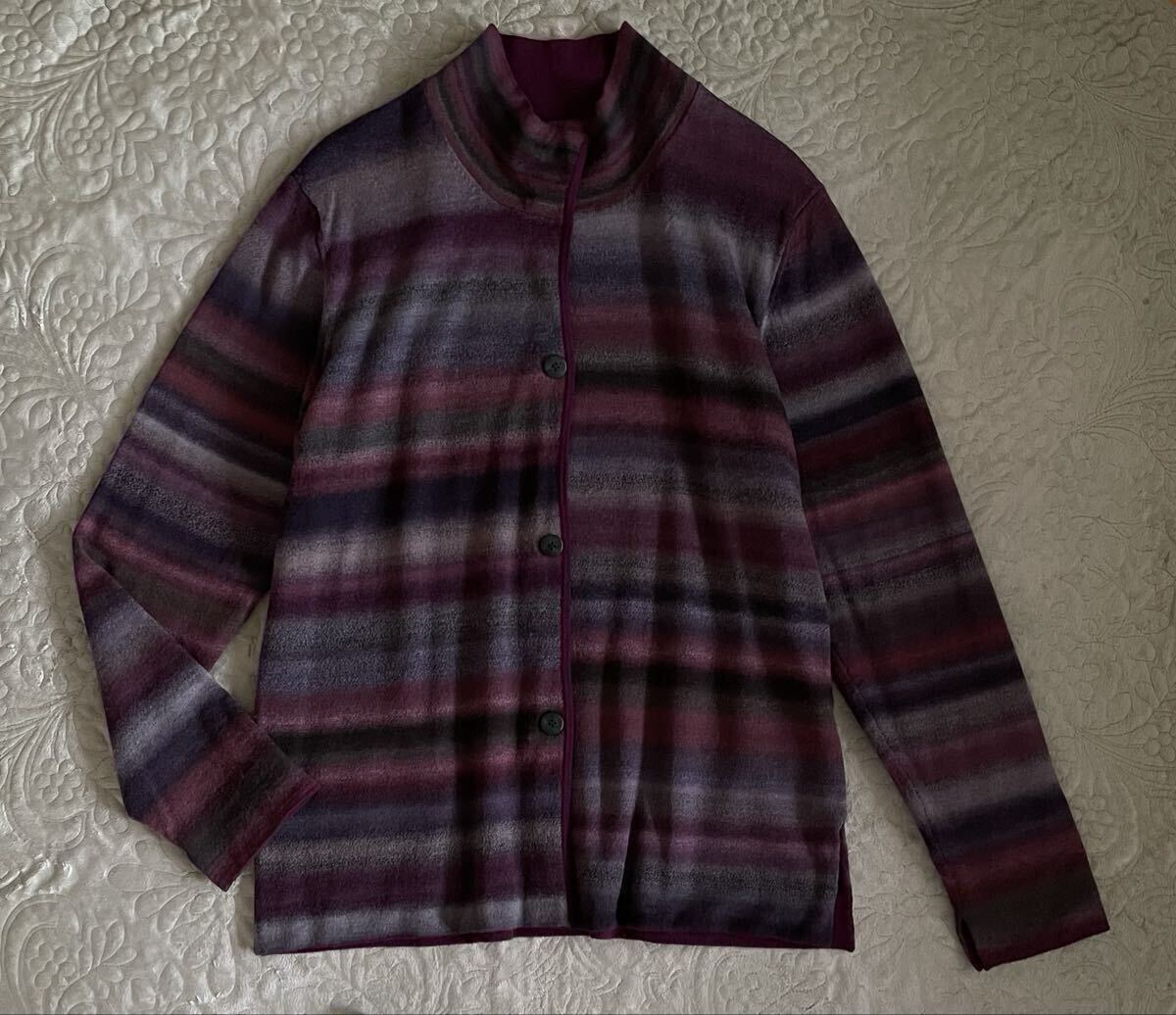 pinetinaシルク カシミヤ カーディガン絹ハイネック リバーシブル赤紫ドット編み込みウール毛ボーダー ピネティーナ ジェイコム 42 收藏