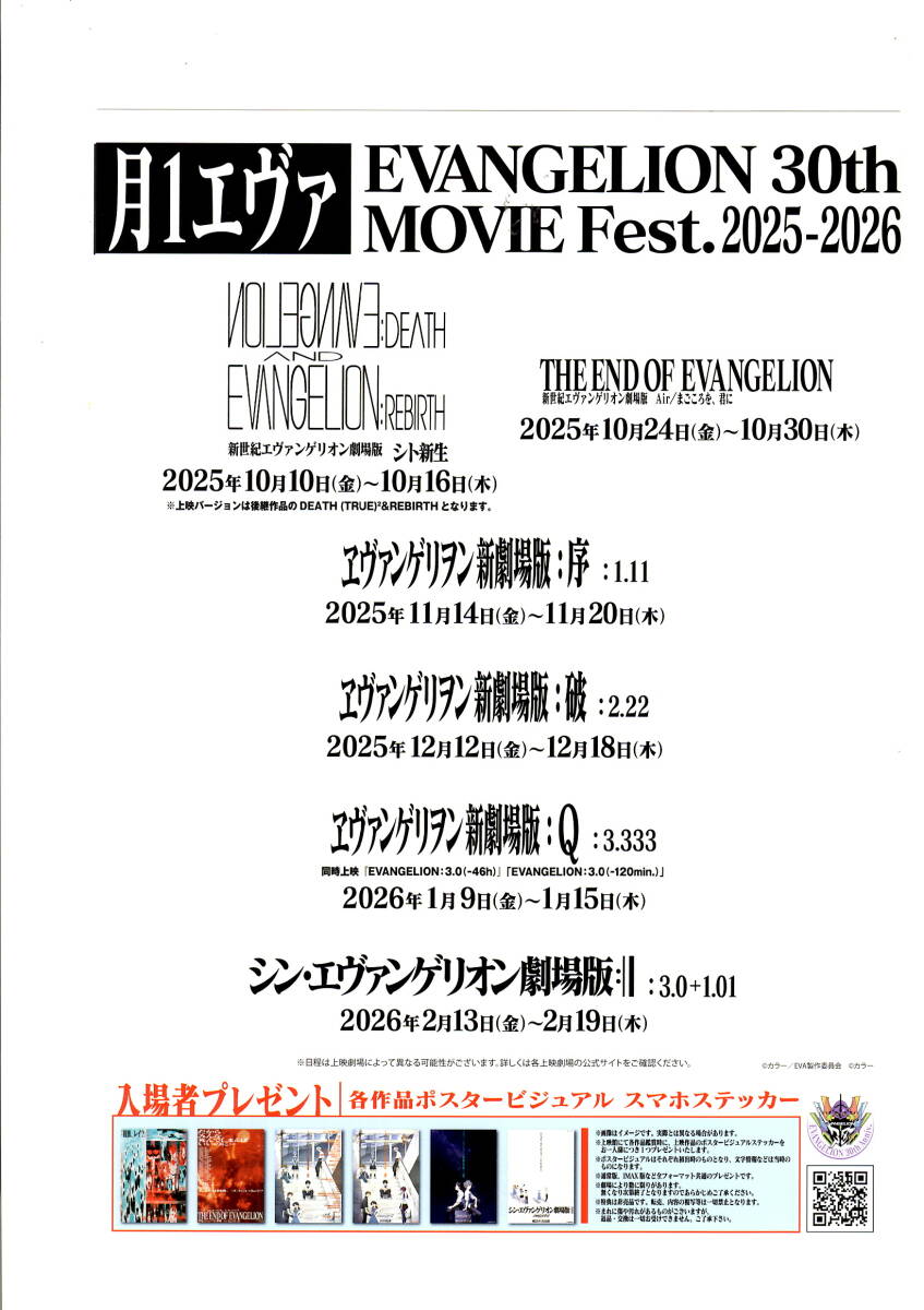 送料無料 各5枚 エヴァンゲリオン 30周年記念 映画フェス 2025-2026 映画告知チラシ エヴァ大博覧会 2会場 收藏