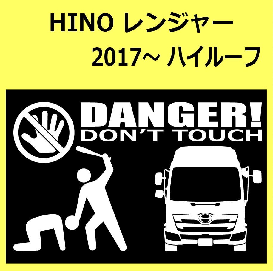 B-L)HINO_レンジャーRANGER_2017-_ハイルーフhighroof_front DANGER手バット正面 ステッカー シール セキュリティ 收藏