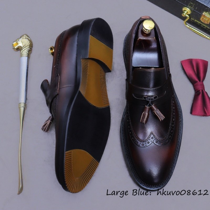 超希少◆タッセルローファー 高級牛革 レザーシューズ メンズ 職人手作り 本革 紳士靴 ビジネスシューズ フォーマル 革靴 珈琲色 25.5cm 收藏