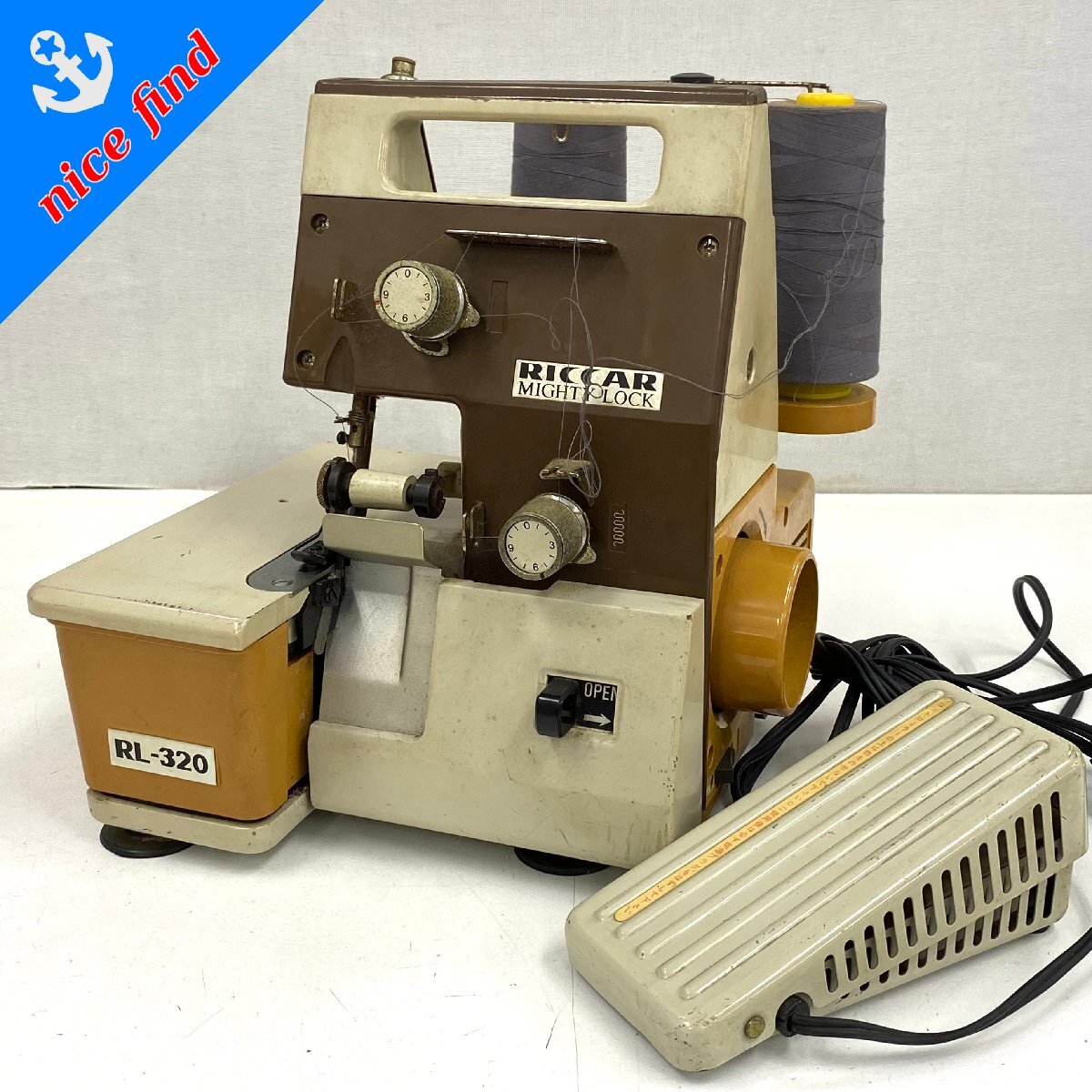 通電OK◆リッカー RICCAR◆マイティロック MIGHTY LOCK RL-320 ロックミシン 本体 フットペダル付き ハンドクラフト 手工芸 裁縫 ジャンク 收藏
