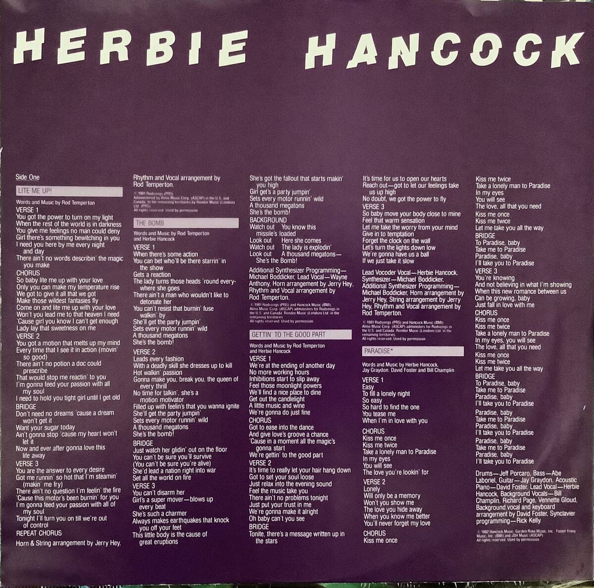 US盤 HERBIE HANCOCK 【LITE ME UP】ハービー ハンコック LP 1982年 オリジナル FC 37928 シュリンク残 美品 豪華サポート 收藏