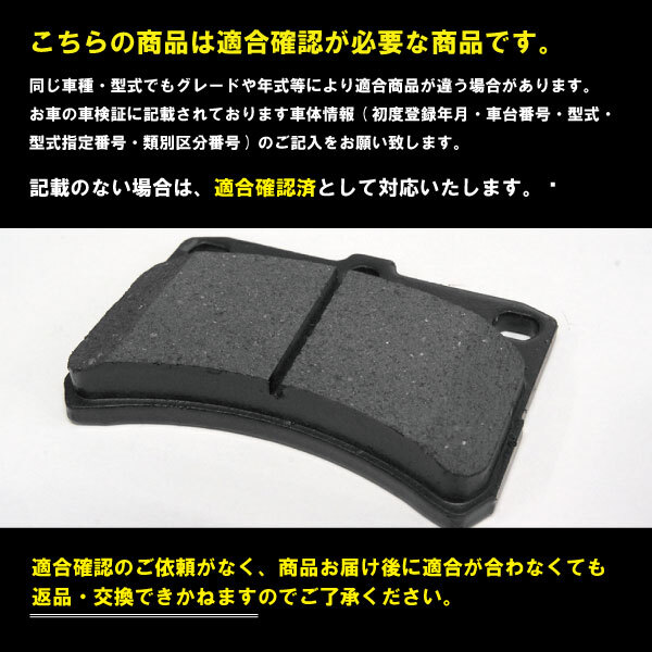 商品ページに適合車種や型式を掲載しておりますが、年式やグレード等によっても適合が変わる場合がございます。 注文手続きページのその他設定欄に、車体情報『初度登録年月・車台番号・型式・型式指定番号・類別区分番号』 をご記入ください。こちらで適合しているかをお調べいたします。適合確認の結果適合しなかった場合や、適合商品の金額が変わる場合、適合商品の在庫がない場合もございますので、必ず適合することが確定してからご注文をお願いいたします。適合確認のご依頼がなく、商品お届け後に適合が合わなくても返品・交換できかねますのでご了承ください。こちらで適合しているかをお調べいたします。