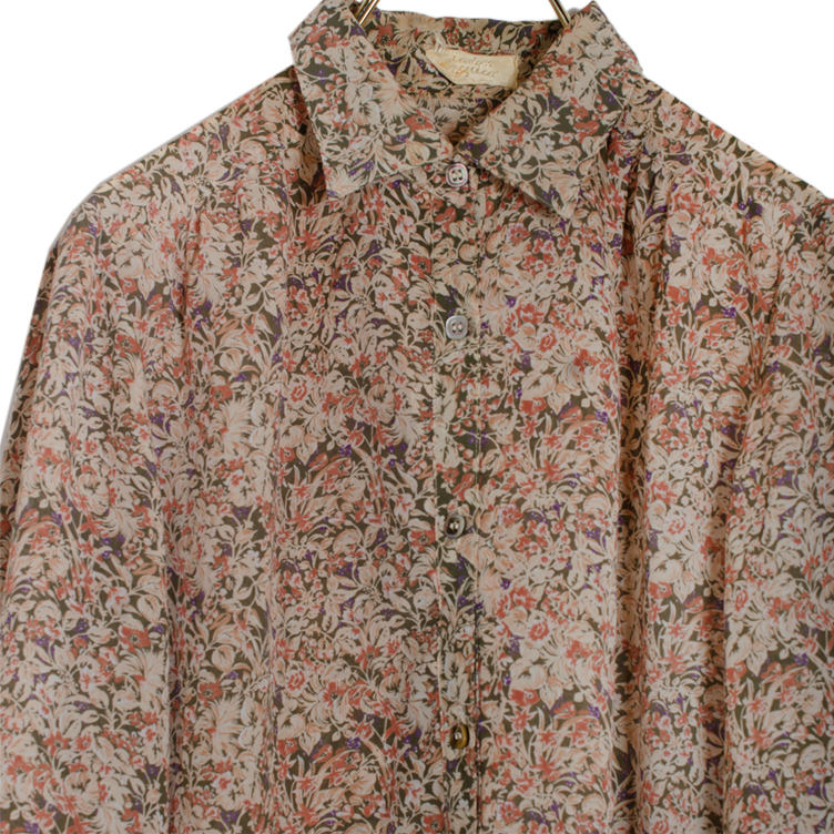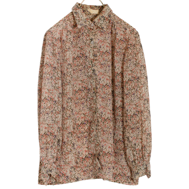 花柄ブラウス ヴィンテージ 柔らか ベージュ 日本製 長袖 総柄 收藏