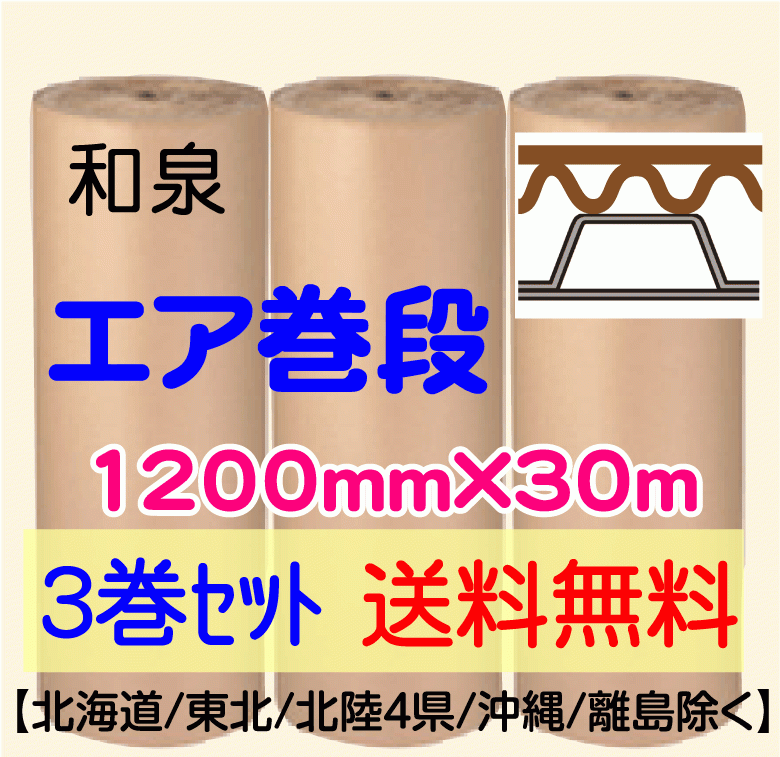 〔和泉直送 3巻set 送料無料〕エア巻段 1200mm×30m プチプチ+巻段ボール 收藏
