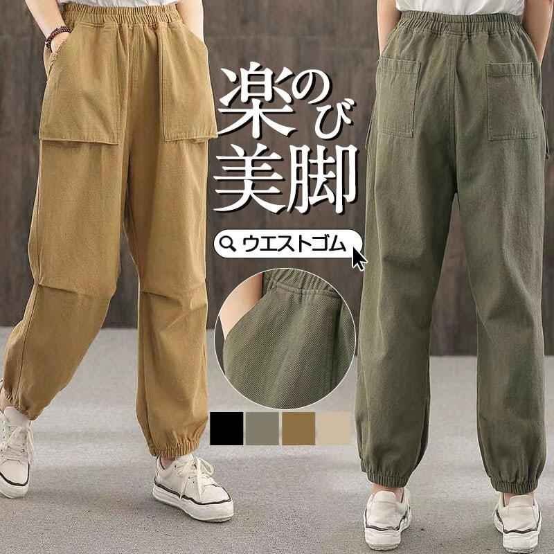 テーパードパンツ ズボン ロング丈 サルエルパンツ リラックスパンツ ウエストゴム 秋 冬 大きいサイズあり L アーミーグリーン(A02) 收藏