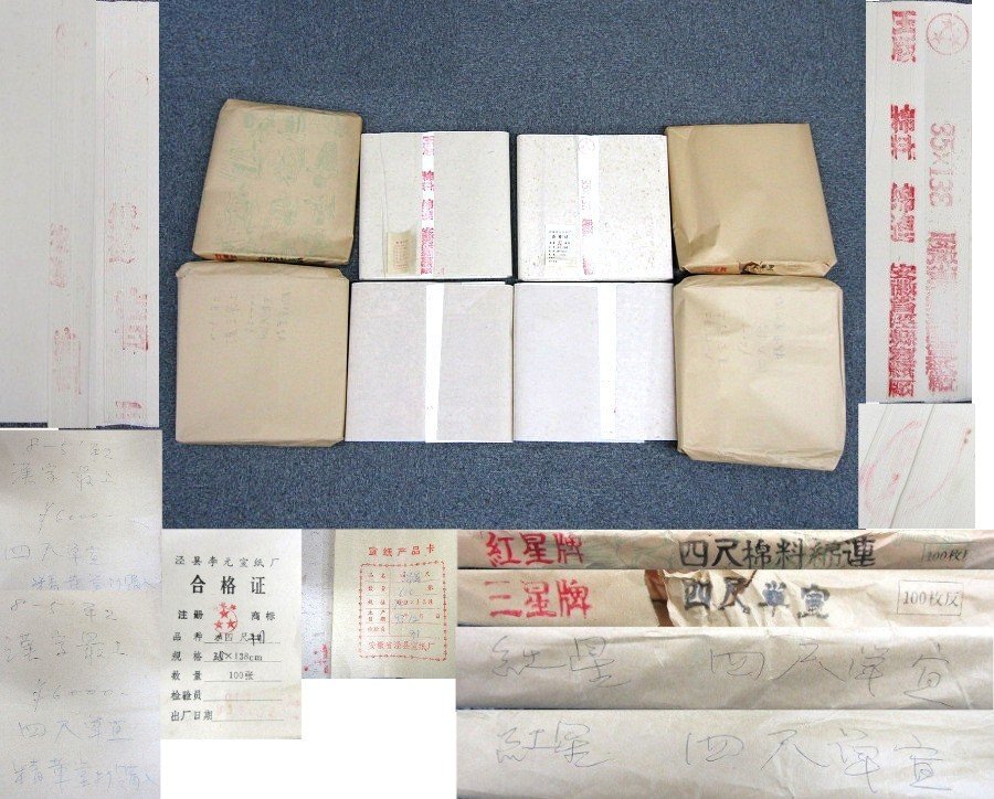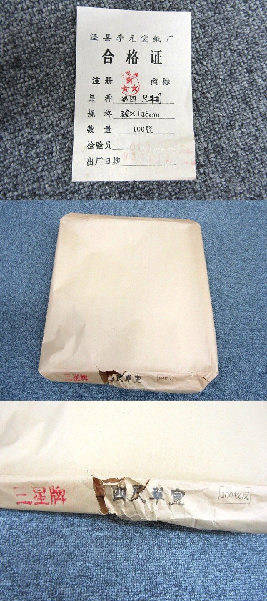 中国 画仙紙 半切 紅星牌 三星牌 4反 紙重量:約4800g【説明欄に詳細写真有り】の出品です。
