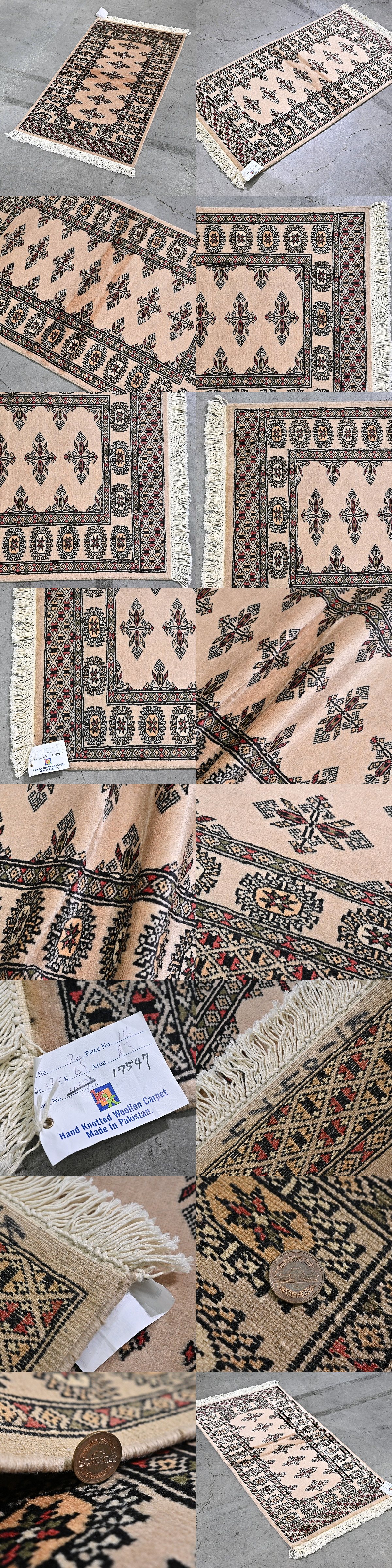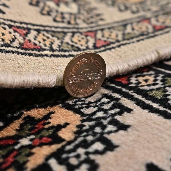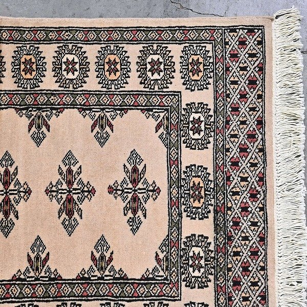 新品 未使用 パキスタン製 手織り ウール絨毯 ラグ ボハラ柄 ギュル文様 ハンドノット 羊毛 カーペット マット ホテル 応接室 P-130 收藏