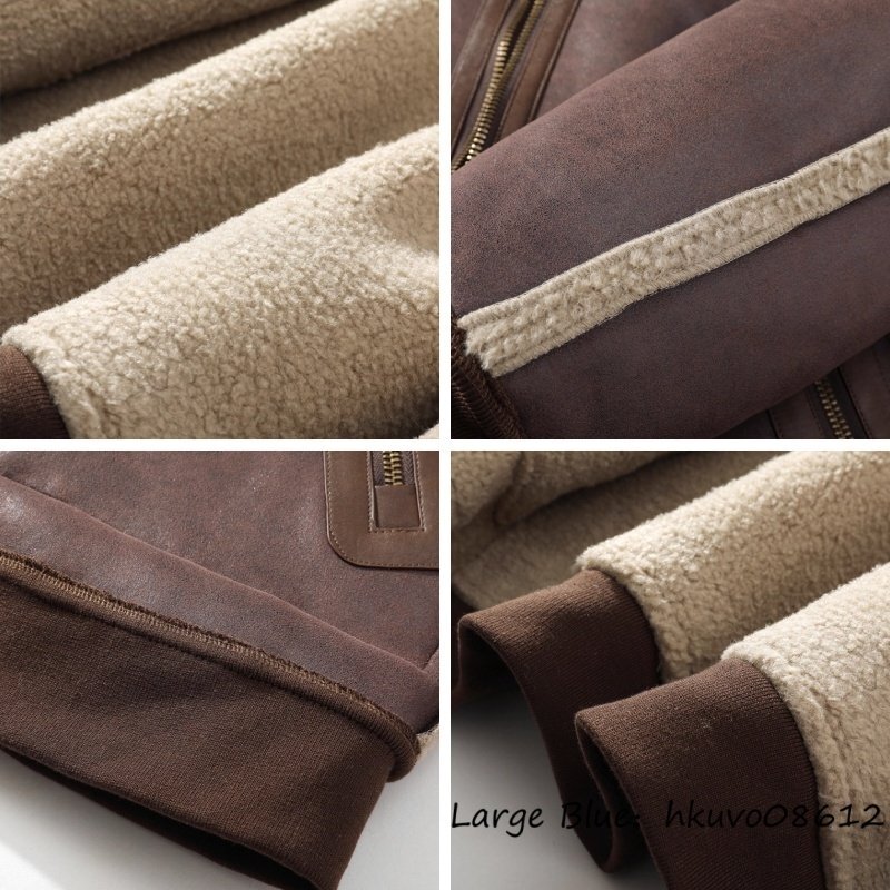 超美品◆最高級 ファーコート メンズ ムートンコート 厚手 超防寒 毛皮 ジャンバー ブルゾン フライトジャケット ふわふわ ブラウン 2XL 收藏