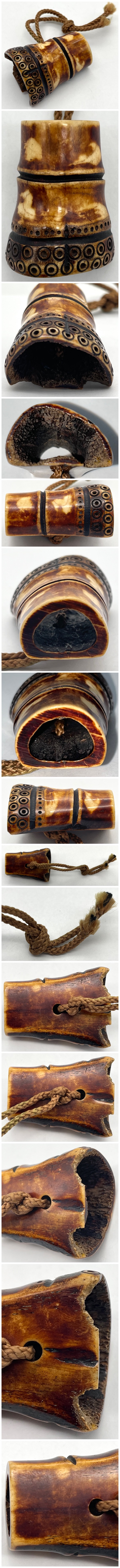 【鶴】時代 提物 牙 角 骨 竹節 根付 長さ約44.2cm 約18.2g◯印籠・緒締・提げ物・鍔・鎧・刀・煙管・煙管入 A455 收藏