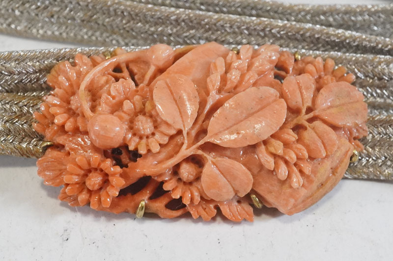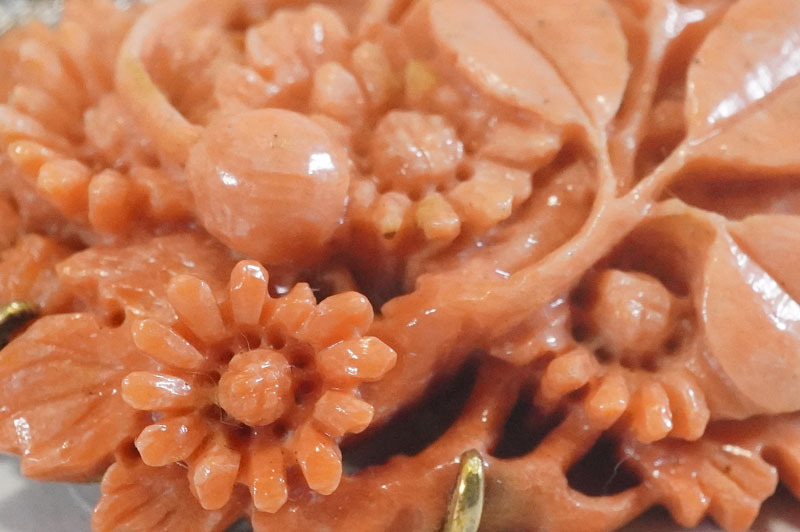 【K535】珊瑚 サンゴ 帯留 更銀金具 アクセサリー コーラルピンク 和装小物