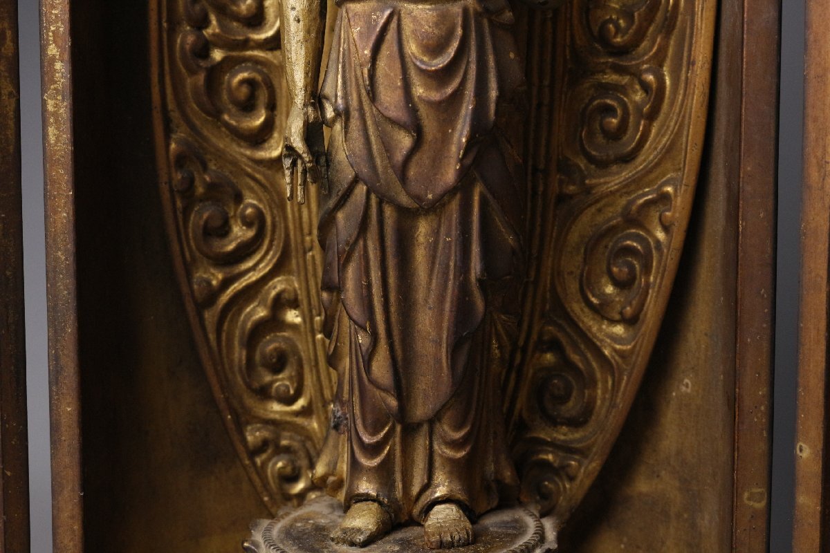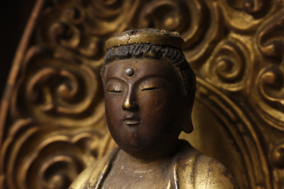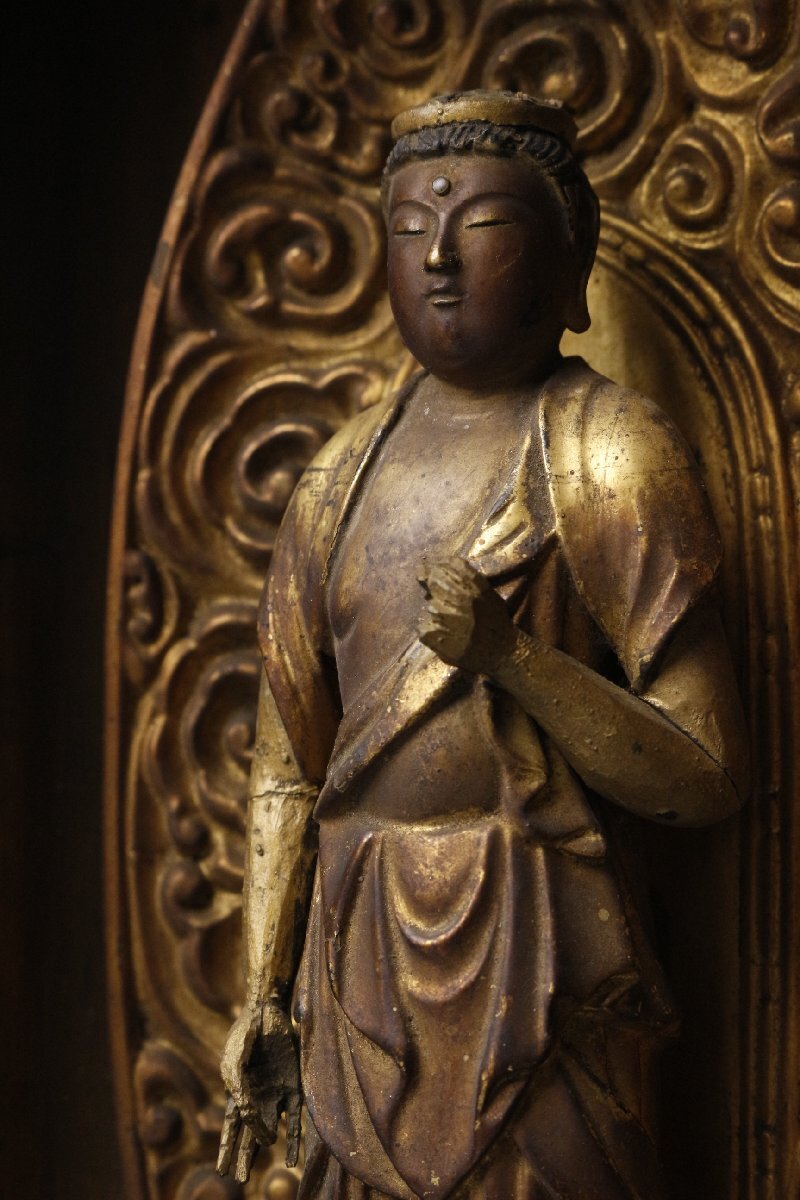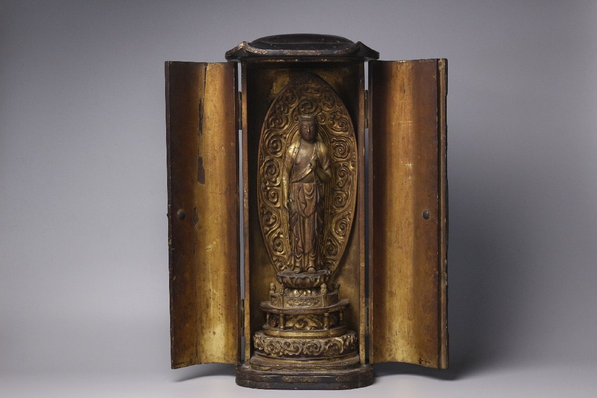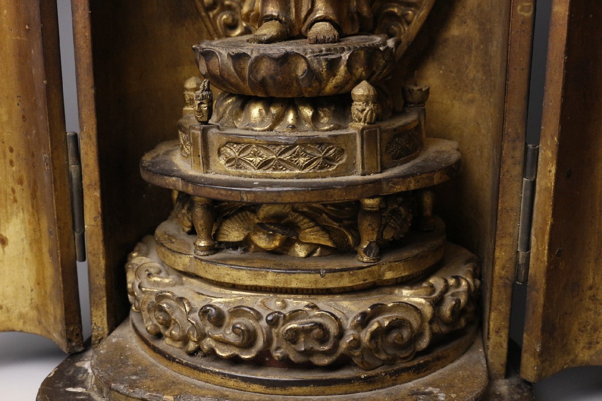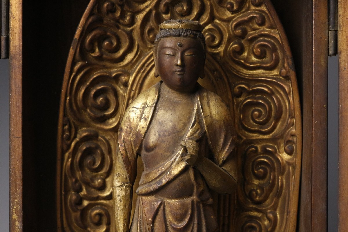 【LIG】江戸期 木彫鍍金 観音菩薩立像 細密装飾金具 時代厨子 寺院引取品 [.YY]25.10 收藏