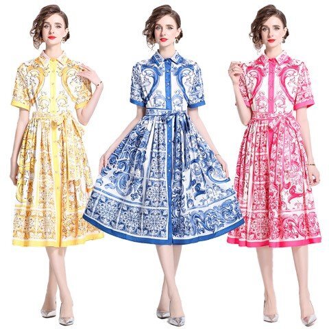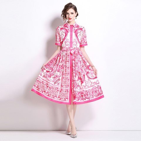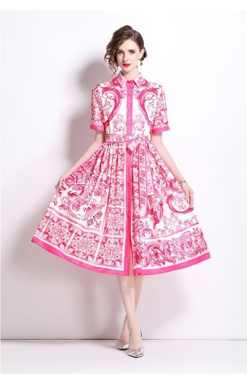 ひざ丈ワンピース ミディアム丈ワンピース 半袖 前ボタン きれいめ ドレス レディース XL レッド 收藏