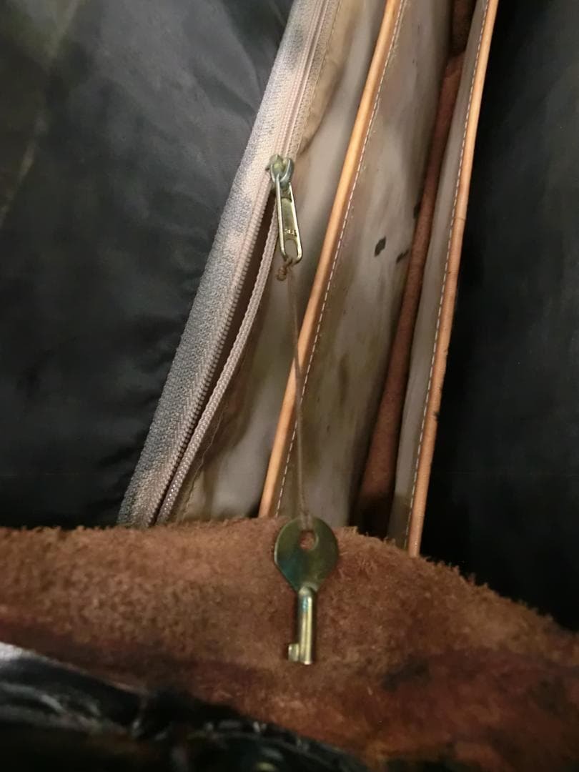 ヴィンテージ レザー ビジネスバッグ 本革 ブリーフケース 鍵付き アタッシュケース 書類かばん 昭和レトロ 鞄 古着 Q30741 收藏