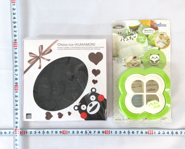 | 内 容 | ■キッチン用品 ・チョコレート型 ハート×3種3点 ・にこにこフェイス 抜き型×2種2点 ・スケッパー×1点 ・サンドでパンだ×1点 ・くまモン チョコレート型×1点 ◆総額 8890円相当 ※パッケージにやけあります |