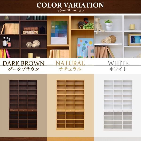 お部屋スッキリ壁面収納!高さと幅で大容量の収納が可能! 【ポイント】 ①高さ210cm・幅120cmのハイタイプ大容量収納! ②可動棚で本だけでなく、小物も自然に収納できます。 ③中段部分は3連の引き出しで文房具などの小物も収納できます。 ④カラーは選べる3カラー! |