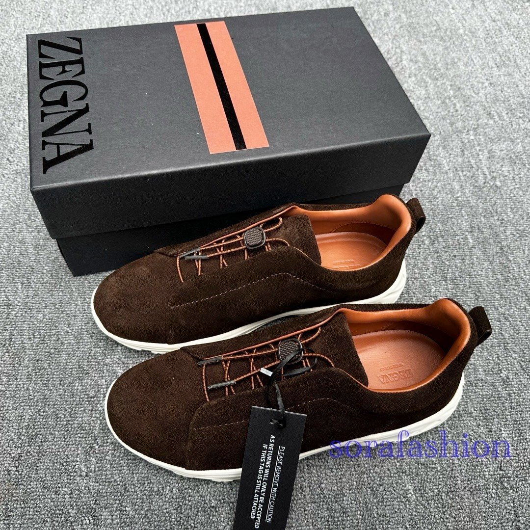 Ermenegildo Zegna エルメネジルド ゼニア メンズウォーキングシューズ スニーカー コーヒー EU39 スエード ローカット靴 Triple Stitch 收藏