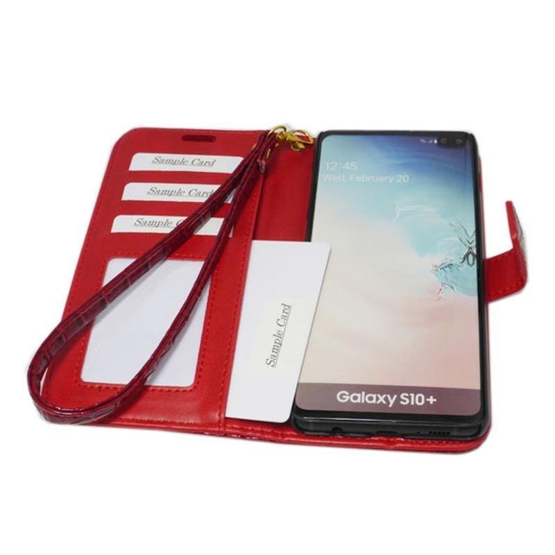 送料無料 Galaxy S10+ Plus SC-04L SC-05L SCV42 手帳型 フリップ PU クロコ柄 鰐柄 わに柄 型押し ギャラクシー S10プラス ケースカバー赤 收藏