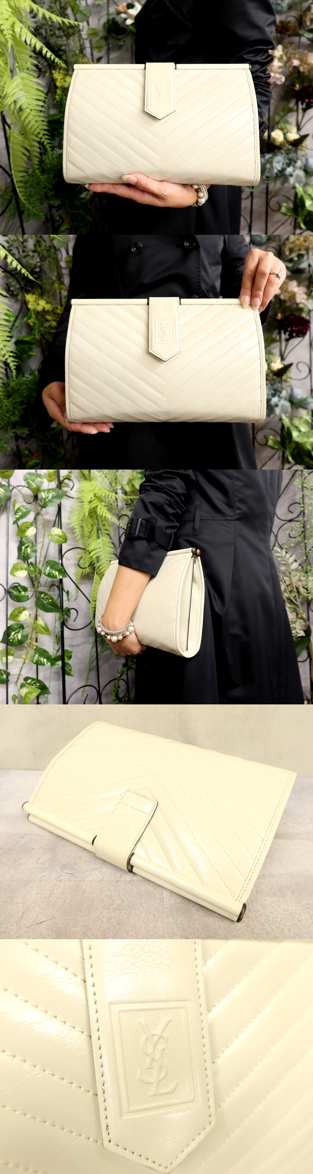 ●超美品●YSL Yves Saint-Laurent イヴ・サンローラン●カーフ レザー 本革●セカンド クラッチ バッグ●パールホワイト●かばん●Js61786 收藏