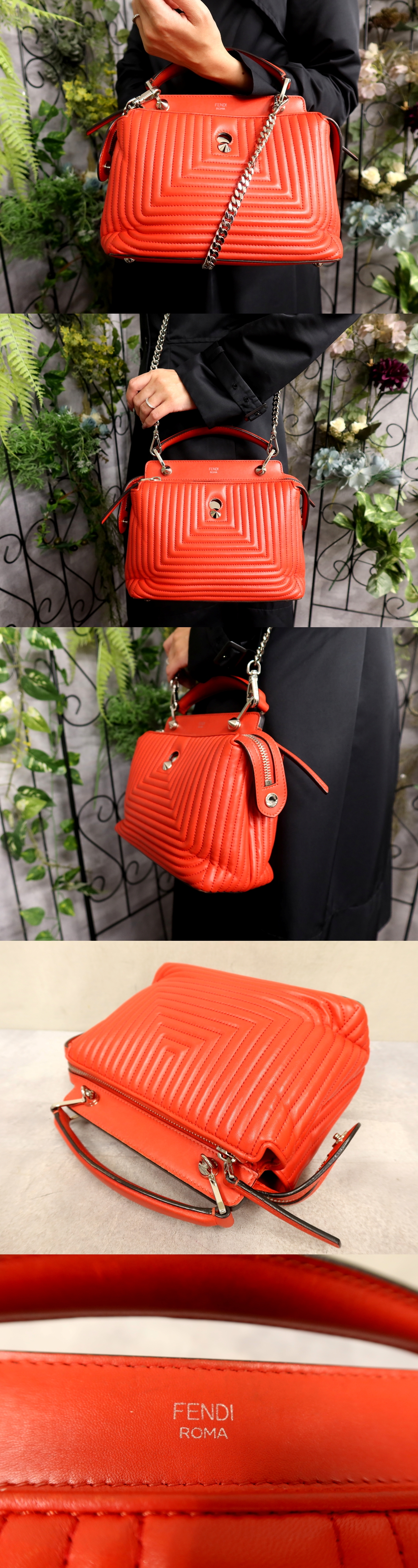●超美品●FENDI フェンディ●ドットコム●キルティング カーフ レザー 本革●2way ハンド バッグ●バーミリオンオレンジ●SV金具●Js61723 收藏