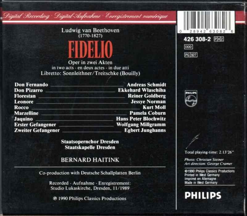 ベートーヴェン:フィデリオ ハイティンク=SKD; ノーマン(S) ゴールドベルク(T) 他 (PHILIPS*426308・2CD) 收藏
