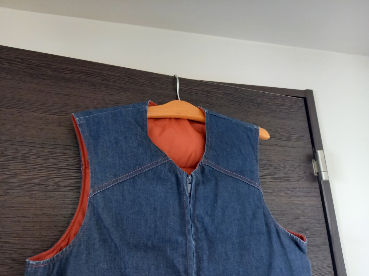 70s~80s eddie bauer デニム リバーシブル ビンテージ USA製 黒タグ ダウン ベスト sizeM です。肩幅約41身幅約55着丈約63センチです。状態はビンテージにしては使用感も少なく全体的に良い状態だと思います。必ず当方の自己紹介欄を見てから質問、入札、落札してください。ノークレームノーリターンでお願いします。