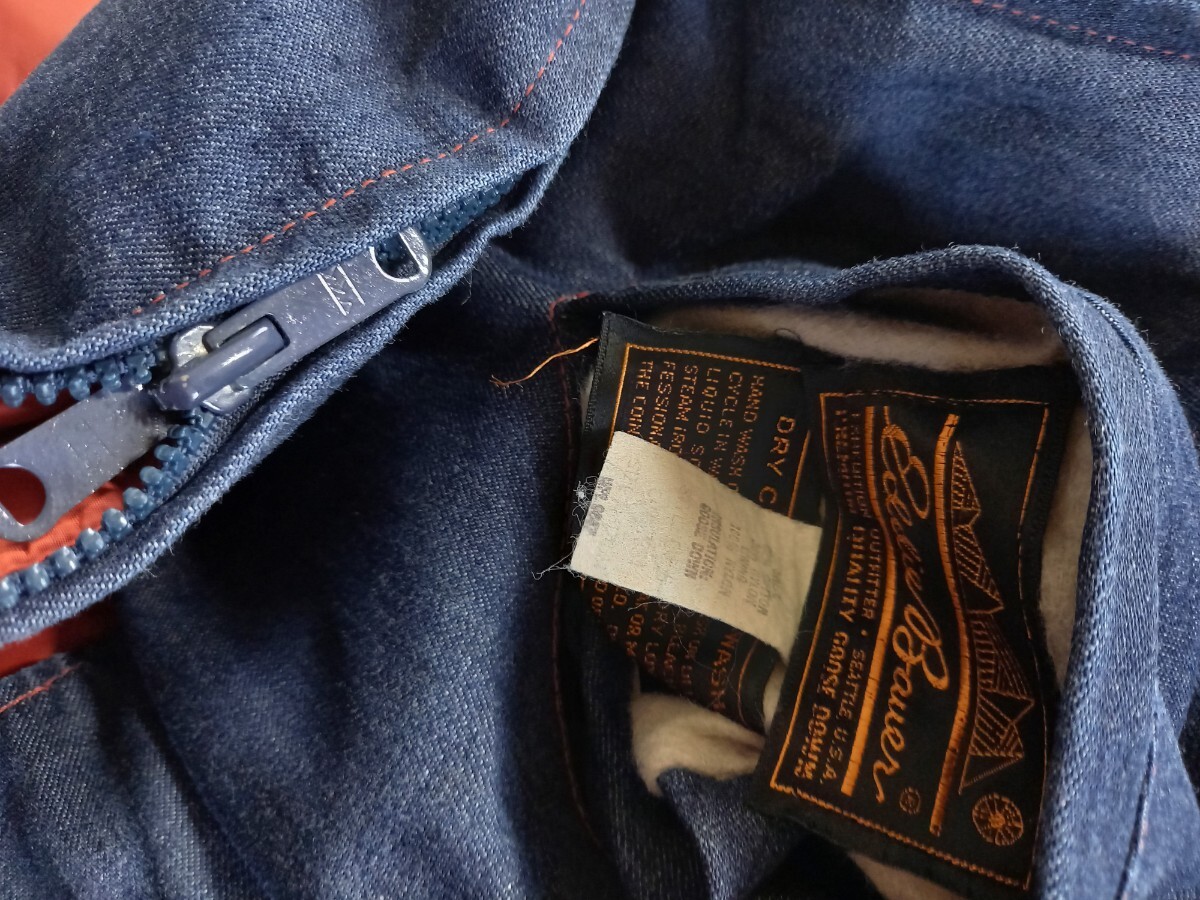 70s~80s eddie bauer デニム リバーシブル ビンテージ USA製 黒タグ ダウン ベスト sizeM エディバウアー カラコラム VINTAGE 收藏