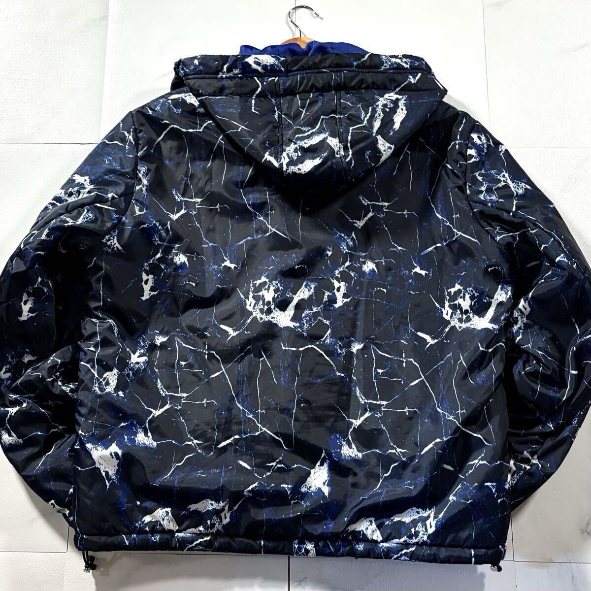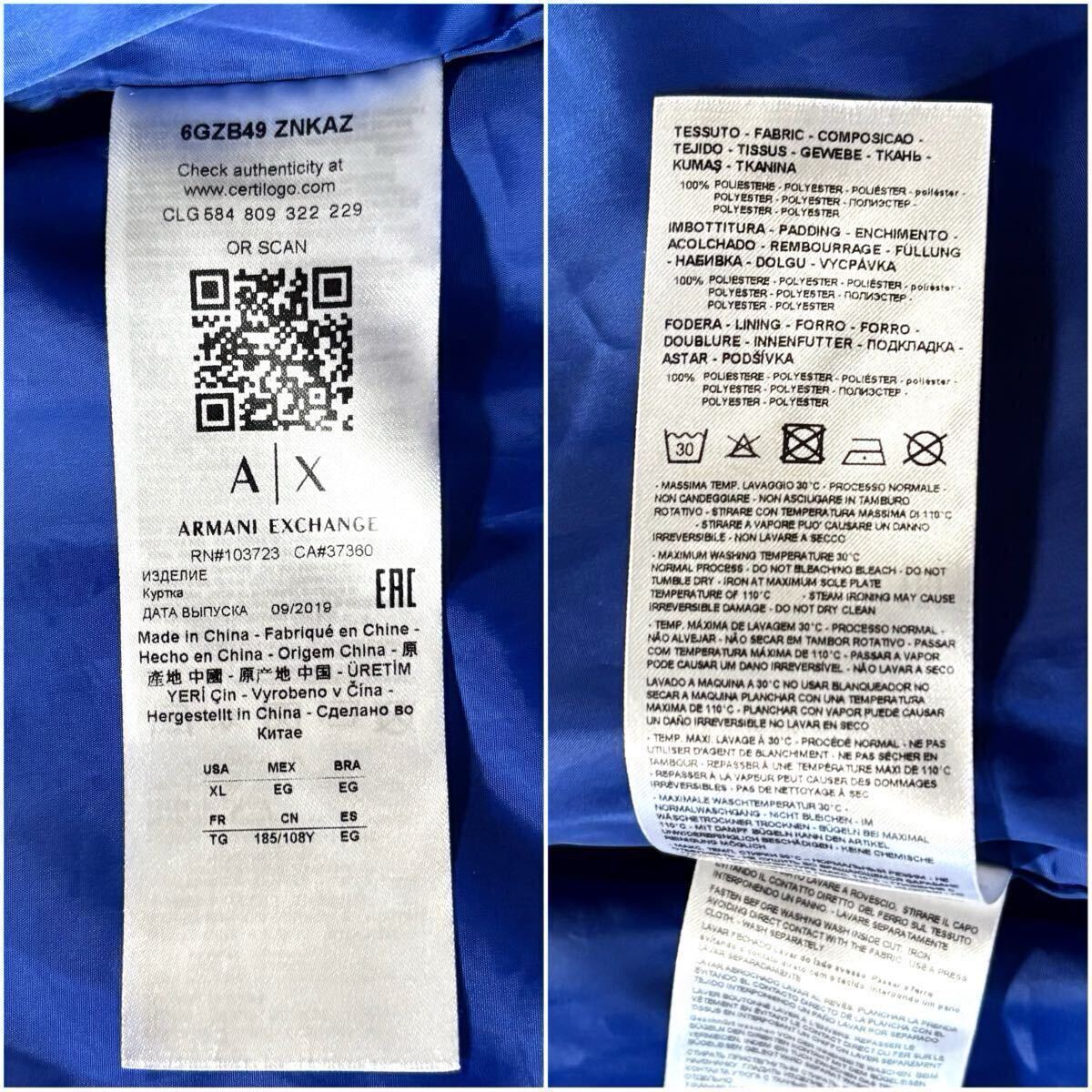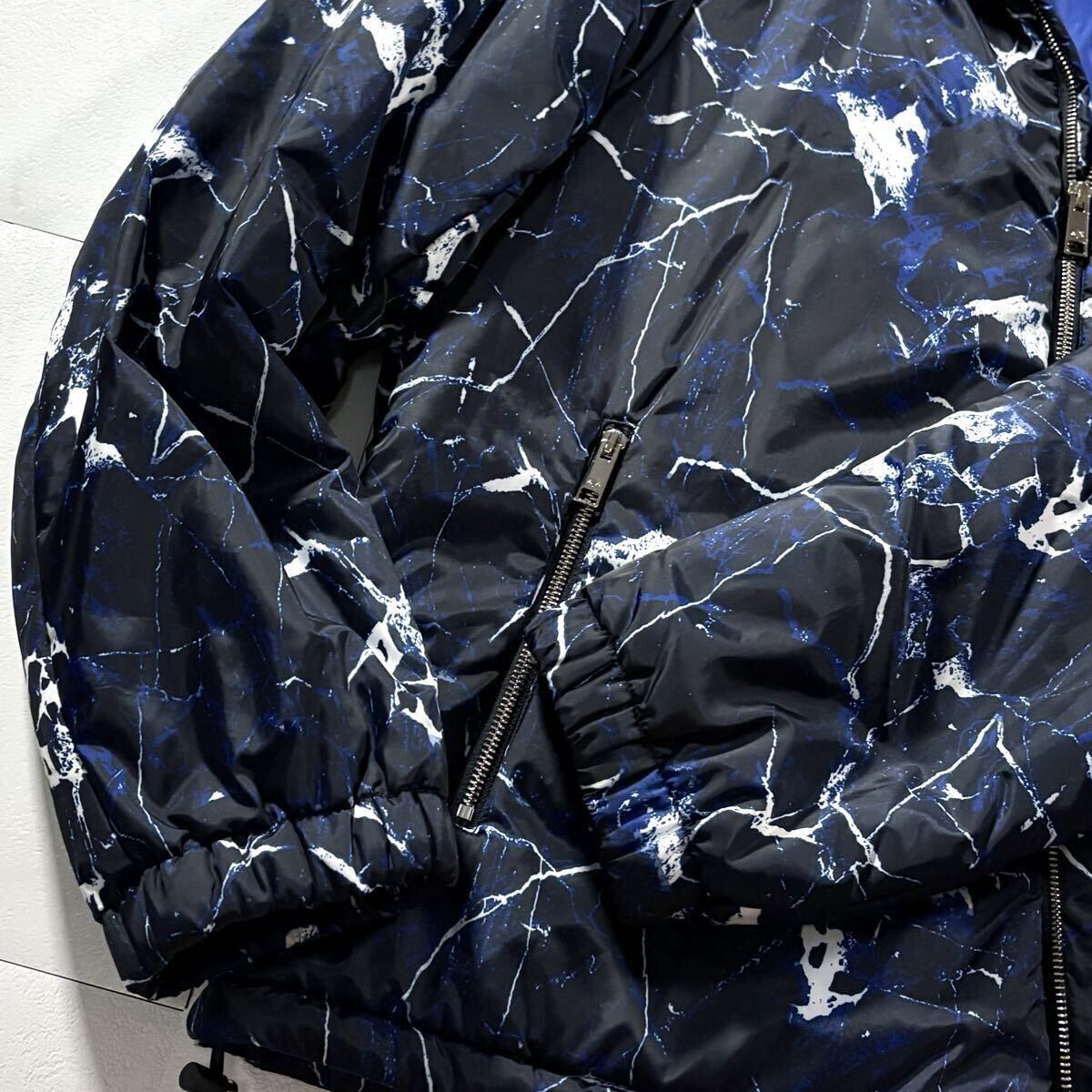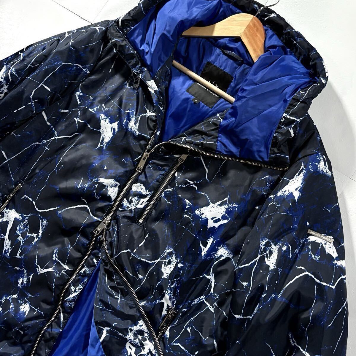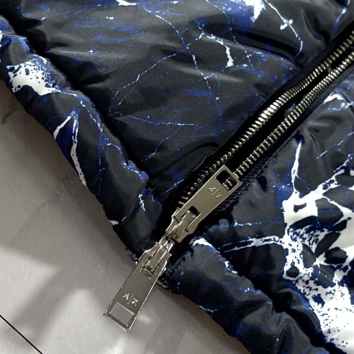 未使用級/XLサイズ●ARMANI EXCHANGE アルマーニ エクスチェンジ ダウンジャケット エコ 中綿 ダブルジップ 総柄 ロゴ金具 洗濯可能 裏地青 收藏