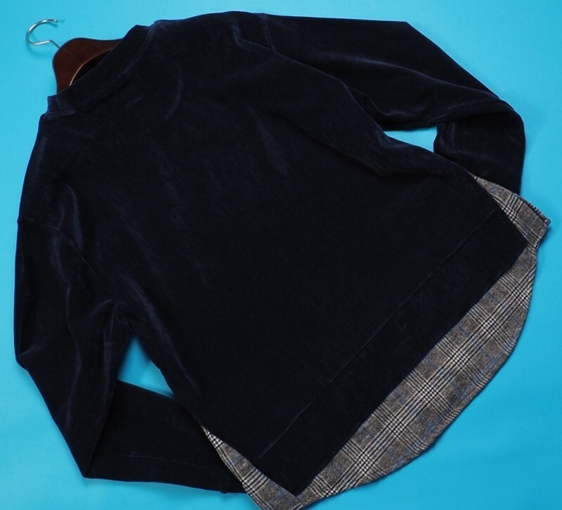 新品定価0.8万円 COMME CA COMMUNE コムサコミューン シェニールヤーン チェック切り替え トレーナーM紺(09) 15CE04 收藏