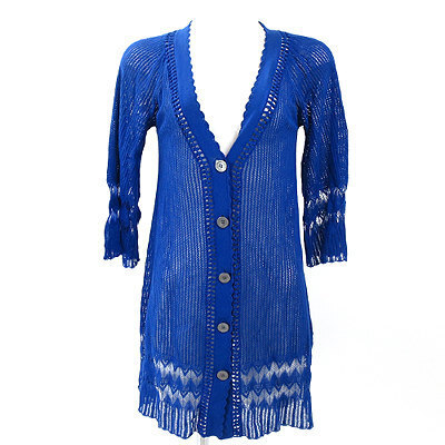 | 鮮やかなブルーがコーデのアクセントに☆ かぎ編みの透け感のあるカーディガンは夏の紫外線や冷房対策にも重宝する一枚です。 着丈がやや長めで、気になる腰回りのをすっぽりカバーしてくれる優秀アイテム。 タイトなシルエットのボトムと好相性ですよ。 裾に若干の使用感が見られますが、比較的きれいなお品です。 着丈約77㎝ 裄丈約56㎝ バスト約76㎝ 【サイズ】:(M) 【素 材】:(コットン100%) 【 色 】:(青) 【程 度】:(AB) 12140630-030 499 023 | ||||
