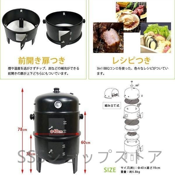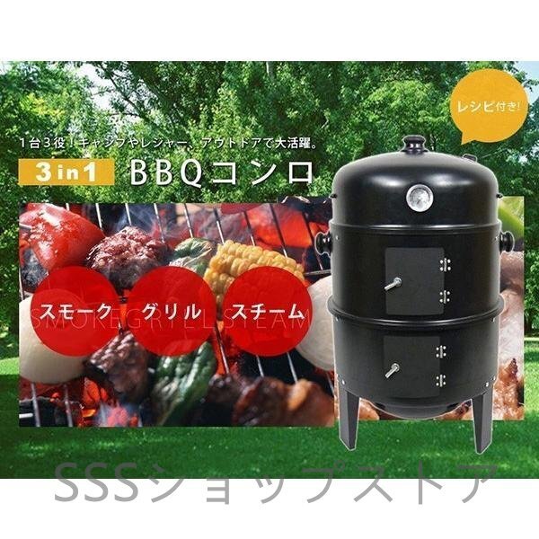 燻製器 BBQコンロ バーベキューコンロ バーベキューグリル スモーカー スモークグリル 組立式 焼き 蒸し 收藏