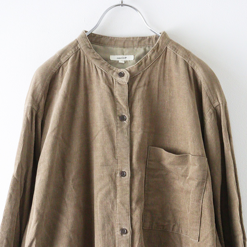 スタジオクリップ studio CLIP コーデュロイ バンドカラーシャツワンピース L‖モカブラウン ドレス ロング 長袖 前開き【2400014675313】 收藏
