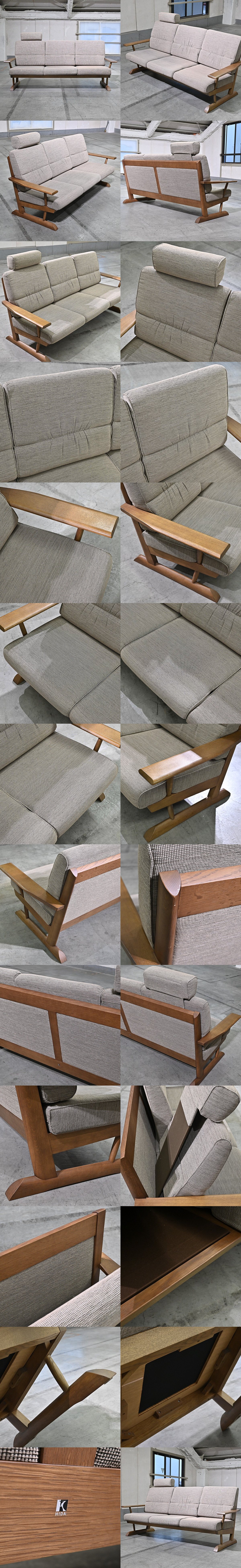 飛騨産業「カヤ/KAYA」3人掛けソファ トリプル オーク無垢材 ナラ アーム ヘッドレスト リビング 3シーター ナチュラル 和 HIDA キツツキ 收藏