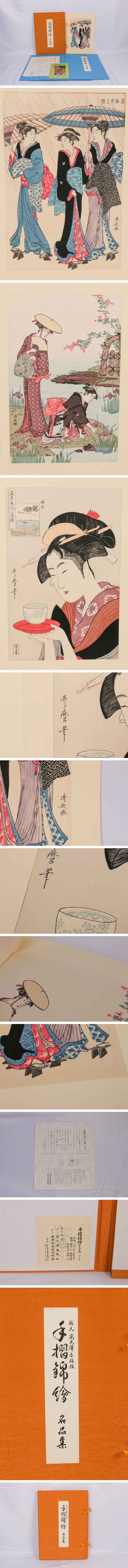 【SAG】 歌麿 豊国 春信 手摺木版画『手摺錦絵名品集 美人画の部』全十二枚揃 高見澤木版社 日本浮世絵同好会発行 目録 折込タトウ 收藏