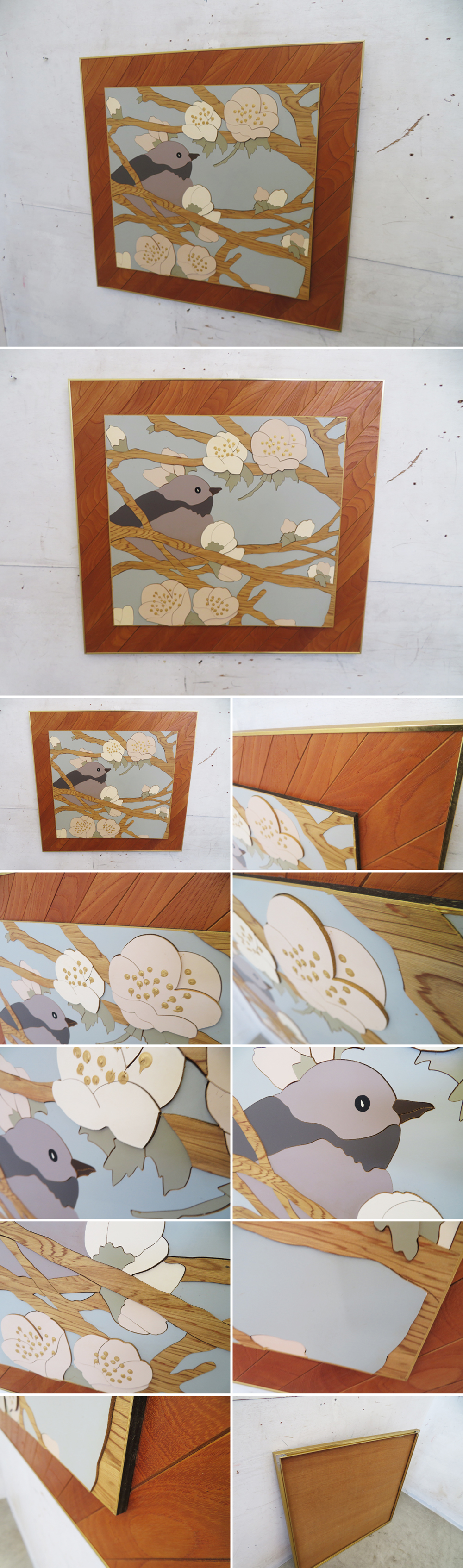 ■P133■美品■寄木アート■ウグイス■枝/小鳥/花■立体/レリーフ■ウッド/木製■伝統工芸■ 收藏