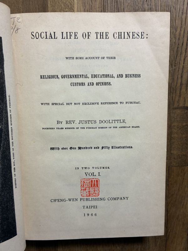 1865年原版復刻|J. Doolittle Social Life of the Chinese 全2巻揃|中国社会生活史・宣教師資料|成文出版社 1966年 台北刊 洋書古書