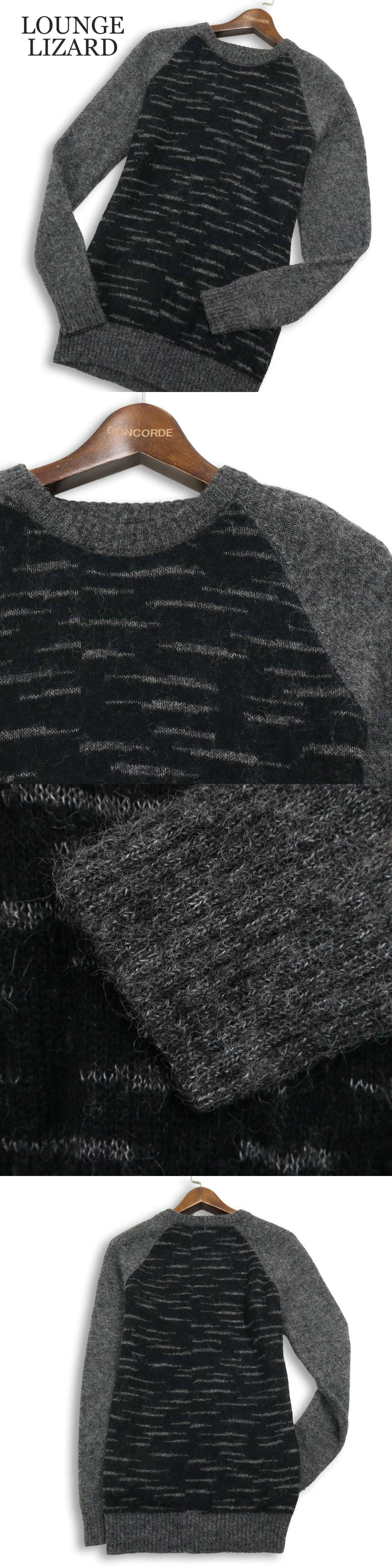LOUNGE LIZARD ラウンジリザード 秋冬 アルパカ ウール混★ ラグラン切替 ニット セーター Sz.2 メンズ 灰 グレー 收藏