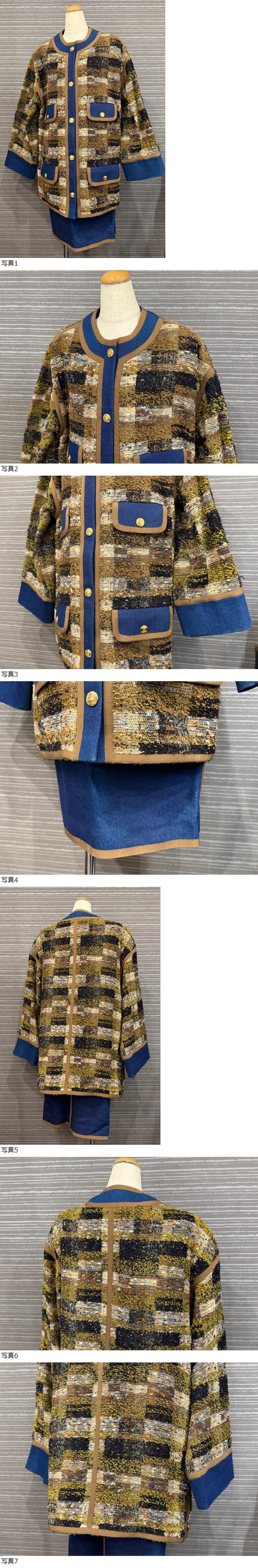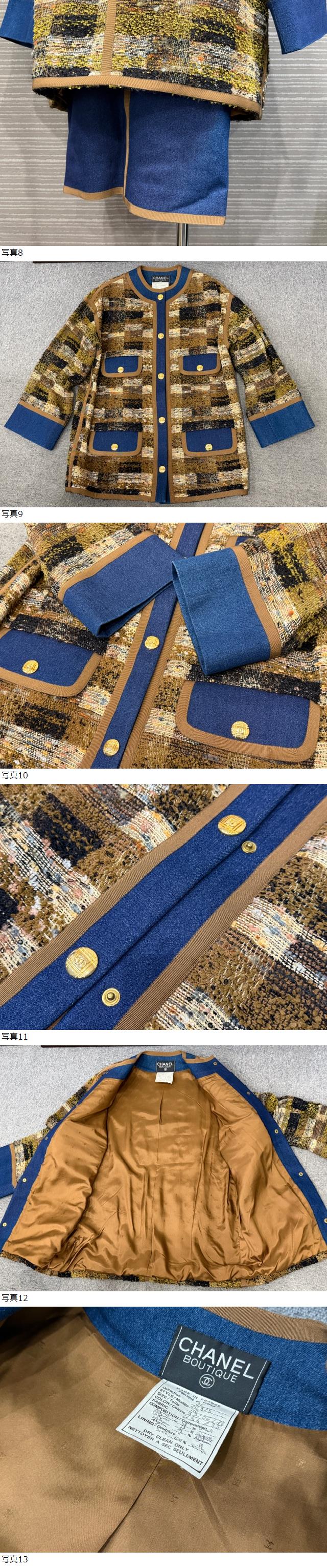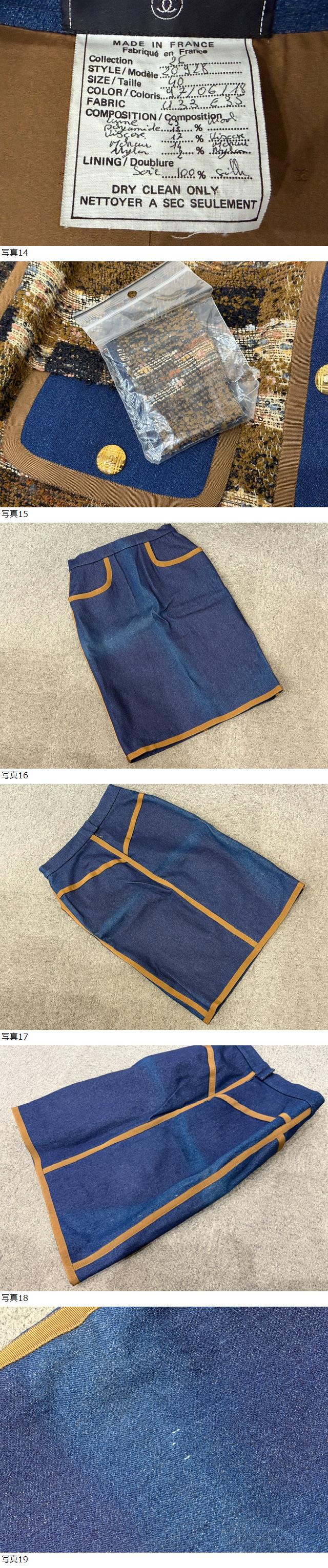 | シャネル CHANEL 20928 ヴィンテージ ツイード×デニム ノーカラージャケット デニムスカート セットアップ USED品 |