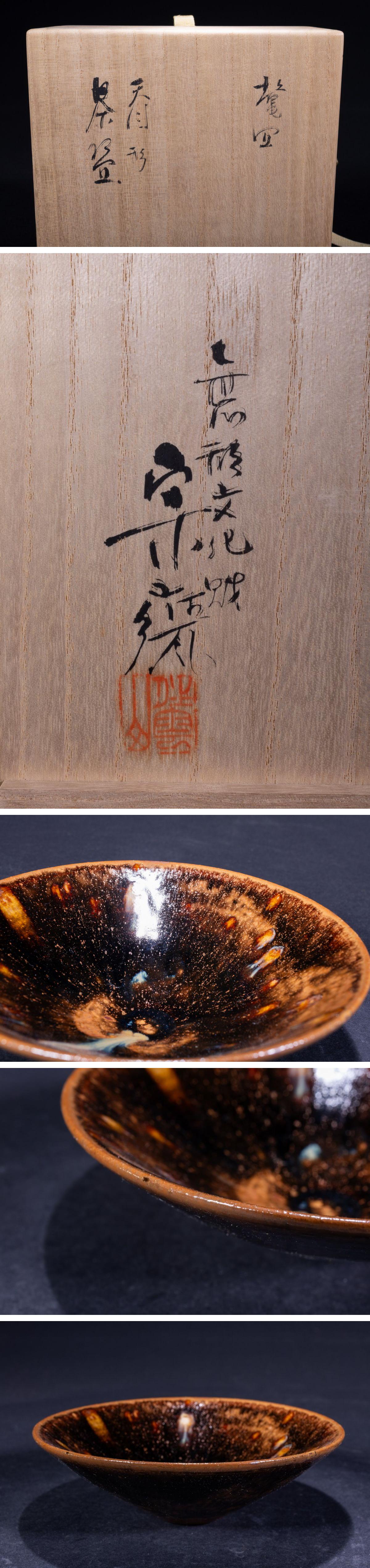【珍品堂】1円から 天目茶碗 在銘 茶碗 抹茶碗 木箱 共箱 茶道具 抹茶道具 径14cm N-A44A-CG2 收藏