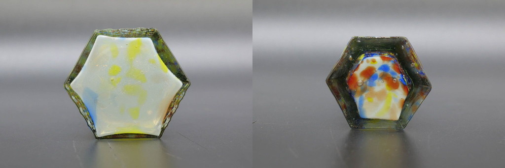 R-076609 昭和レトロ 戦前 大正 お部屋のアクセントになる古いマーブルガラス花瓶2個セット(六角、一輪挿し、花入、花器、硝子) 收藏