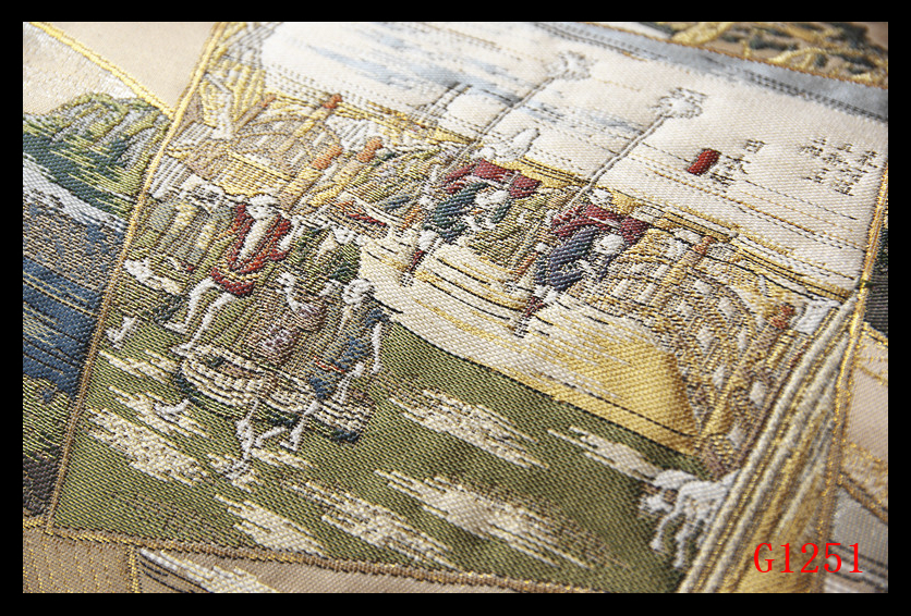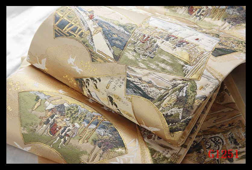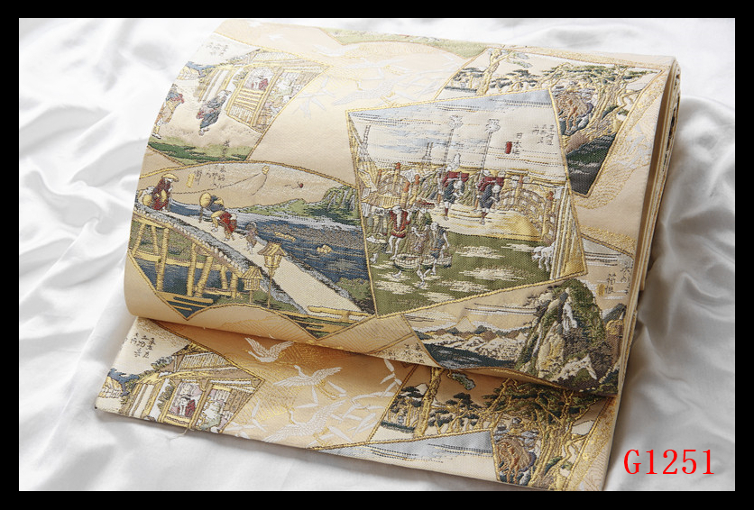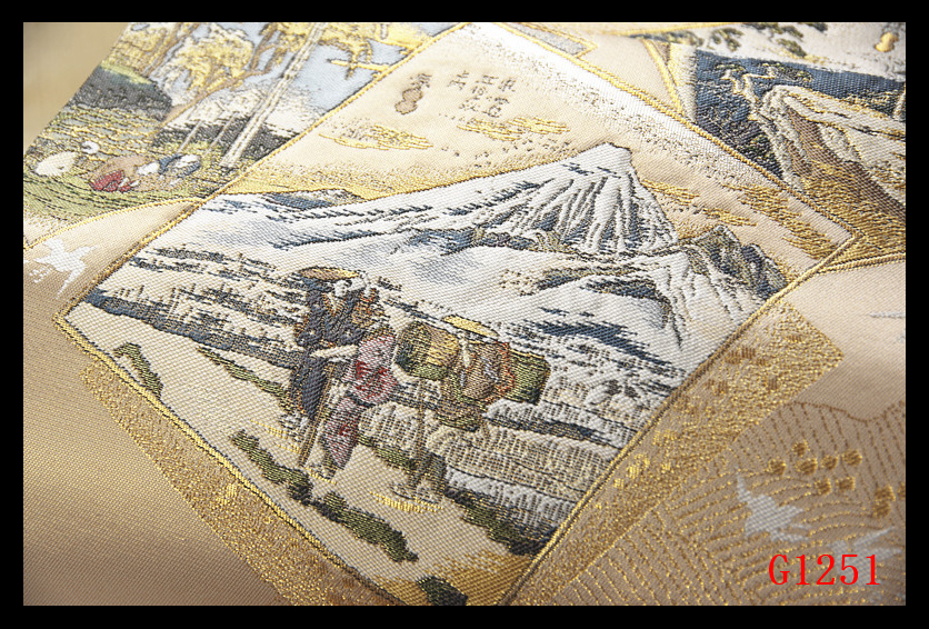 【G1251】厳選逸品 本金箔九百錦 東海道五十三次 歌川広重 気品豊かに 正絹六通高級美術袋帯 ◇検◇簪着物名古屋帯帯締め 收藏