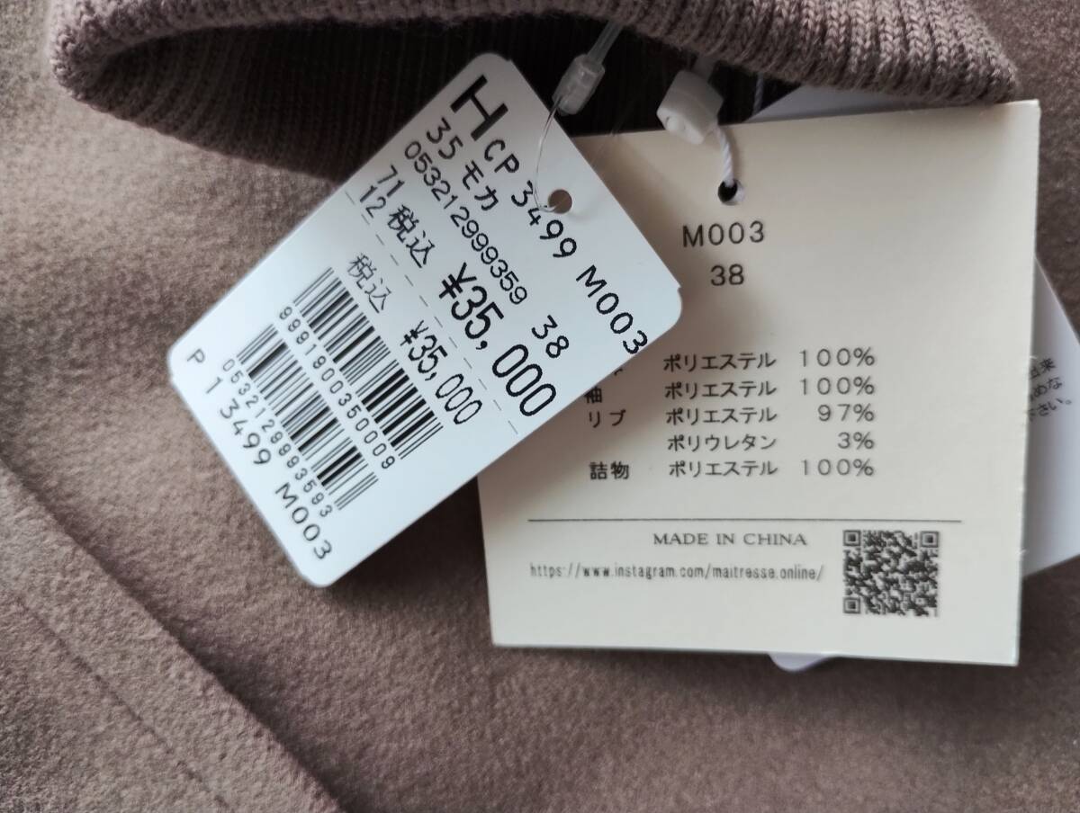 240918 新品 MAITRESSE メトリーゼ SCOTCLUB スコットクラブ 系列 ヤマダヤ デザイン コート モカ 38 ¥35000 3-1 1 收藏