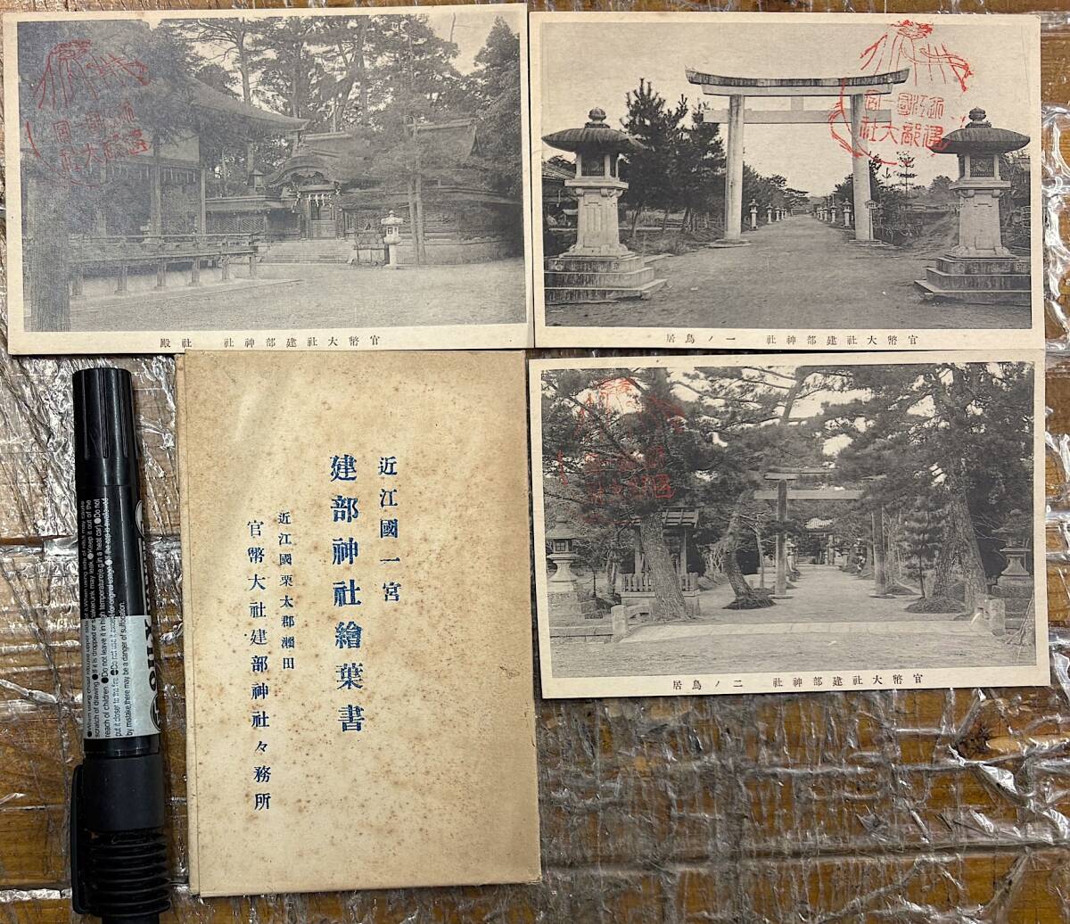 昔の大津 戦前絵葉書 古写真★袋付/3枚★滋賀 大津 近江国一宮 建部神社★一の鳥居 二の鳥居 社殿★大正後期〜昭和初期 收藏