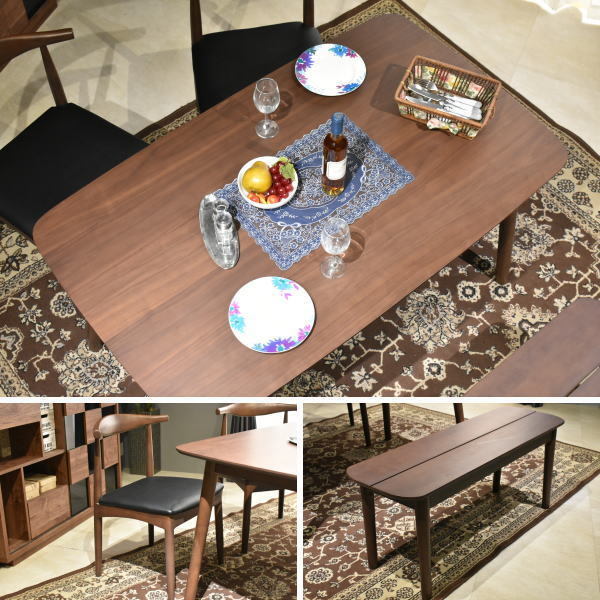 新品 北欧ウォールナット材ダイニング4点セット 幅135cm 食卓リビング椅子テーブルBRチェア ベンチoutlet家具おしゃれ:ST11-27YZQ-KC 收藏