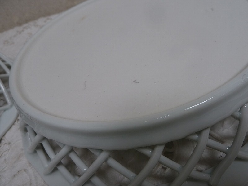 (☆BM)有田焼/暢山 作 菓子器①陶器製 透かし細工 直径24.5㎝ 菓子鉢 色絵 染錦 花紋 籠 深皿 飾り皿 編み細工 バスケット 果物/小物入れ 收藏