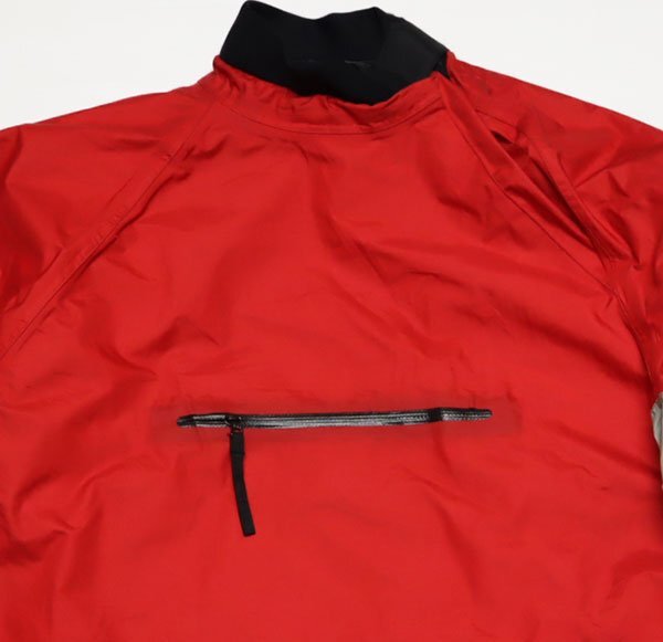 NRSのナイロンジャケットの赤系xグレー系の止水ジッパー付きのプルオーバーです。