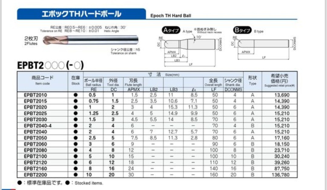 MOLDINO 超硬 ボール エンドミル EPBT2060 R3・5本セット・三菱マテリアル NACHI 日立ツール OSG 高硬度用コート エポック・新品未使用 收藏