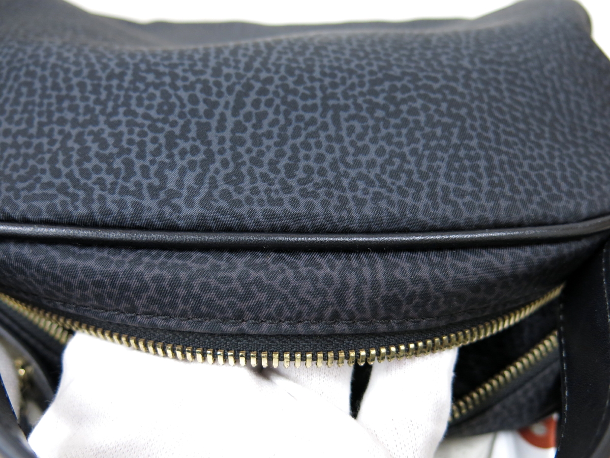 ◆超美品◆BORBONESE ボルボネーゼ◆うずら柄◆ナイロン カーフ レザー 本革◆2way ハンド ショルダー バッグ◆ブラック G金具◆A11518 收藏