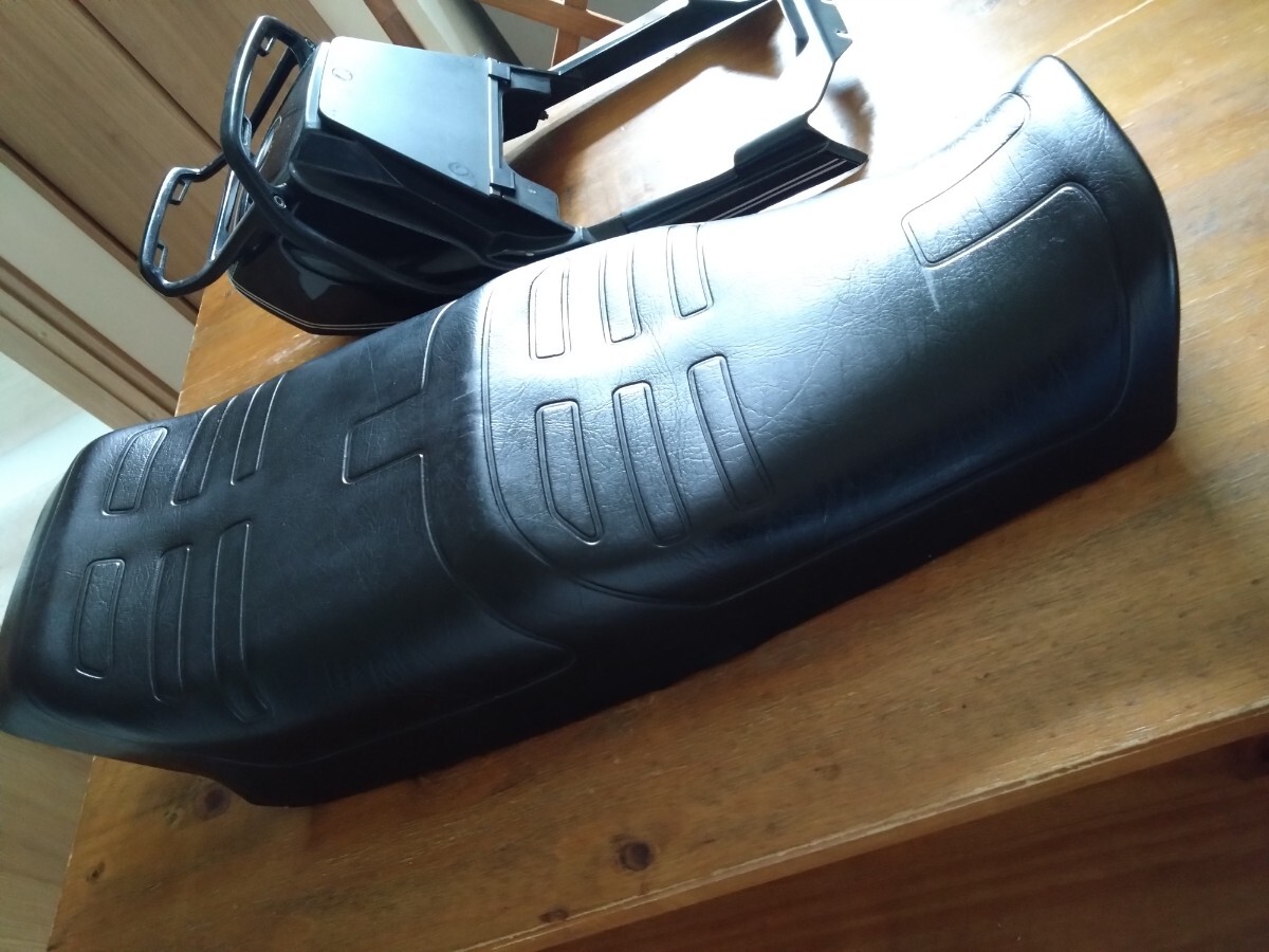 BMW R100 R80等に適合の純正シート、シートカウルです使わないままガレージにしまってありました。大きな傷や目立つ汚れ等ありませんが細かい傷、汚れはあります。個人的には年代を考えれば綺麗な部類かと思いますが神経質な方や完璧な物をお求めの方は入札しないで下さい。写真に写っているものが全てです。良くご覧頂き入札して下さい。適合に関しましての質問には専門家ではないためお答え出来ませんのでよろしくお願いいたします。