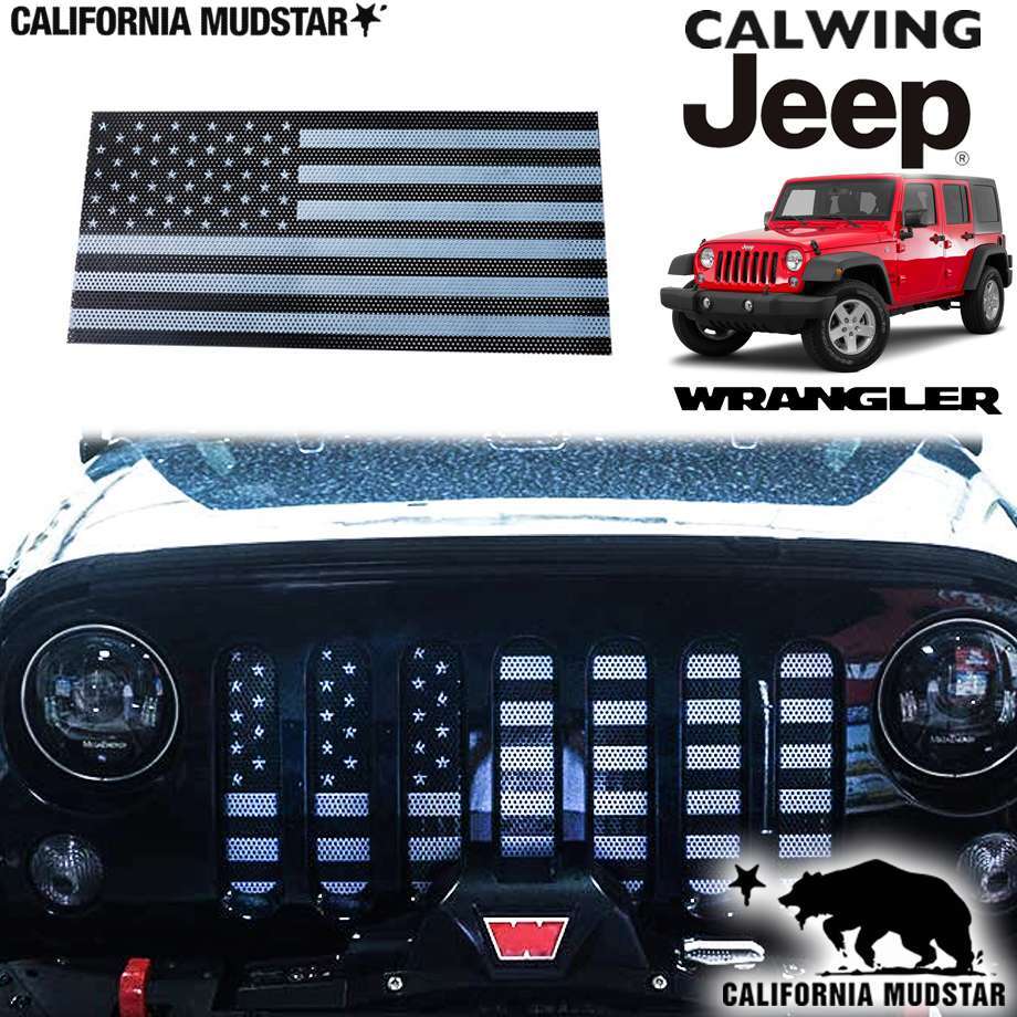 カリフォルニアマッドスター 07-18y ジープ ラングラー JK | メッシュグリル フロントグリルインサート USフラッグ モノトーン 收藏